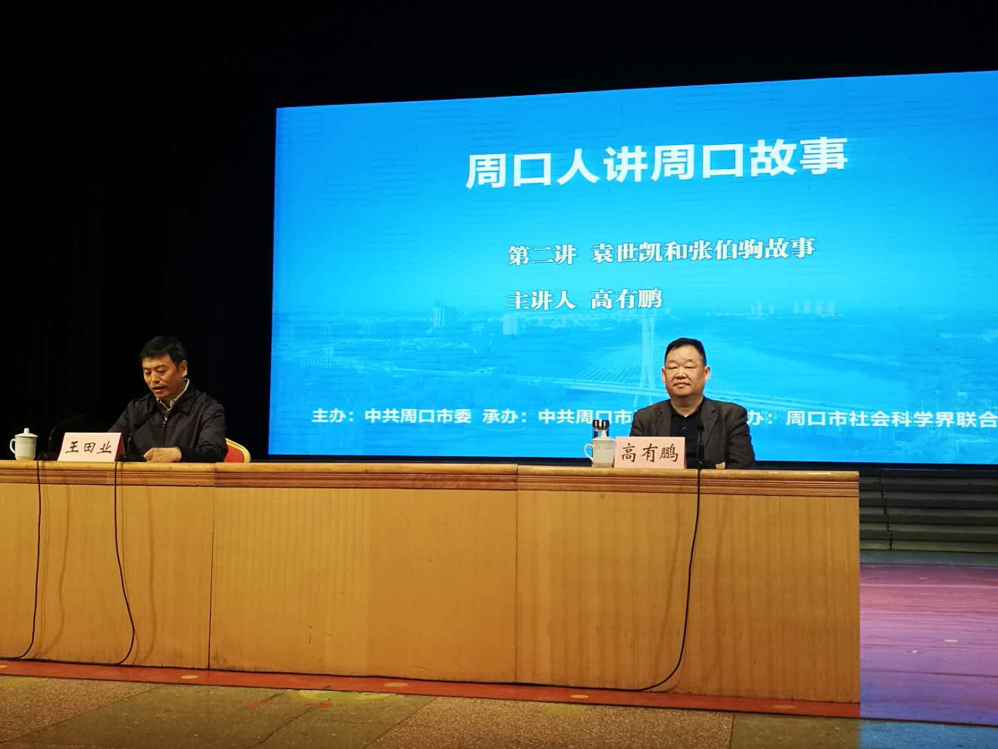 4月24日,“周口人讲周口故事”文化宣讲活动举行第二场宣讲。周口市四大班子领导出席宣讲活动。历史学博士、上海交通大学教授、博士生导师高有鹏,应邀为大家作了题为《袁世凯和张伯驹的故事》宣讲报告。