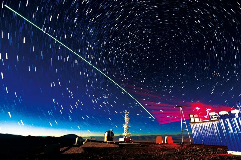 2016年8月16日凌晨,世界首颗量子科学实验卫星“墨子号”在中国酒泉成功发射,标志着我国空间科学研究又迈出重要一步。图为2016年12月9日,“墨子号”量子科学实验卫星与阿里量子隐形传态实验平台建立天地链路(合成照片)。 新华社记者 金立旺/摄