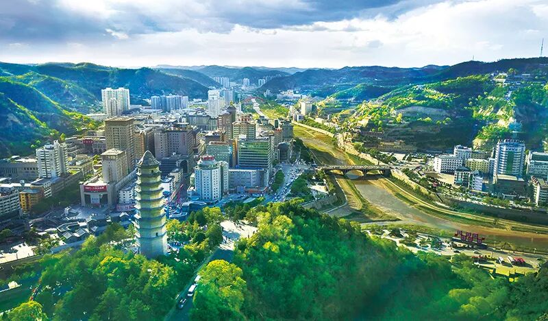 2019年5月,延安向世界宣告告别绝对贫困。脱贫攻坚,让延安从黄到绿,由穷变富,红色圣地旧貌换新颜。图为2019年5月10日拍摄的延安城。 新华社记者 陶明/摄